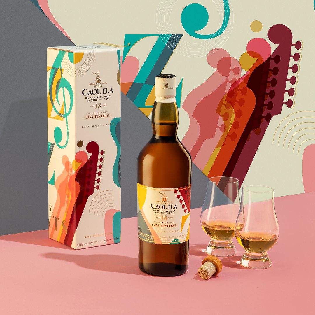 To mark the occasion, Caol Ila released a unique festival edition bottling of its Single Malt Scotch Whisky - Caol Ila 18-Year-Old Jazz Festival Edition, The Guitarist. Created as part of a rare cask finish using toasted Scottish oak cask ends, the whisky was first matured for 18 years in an American oak cask.